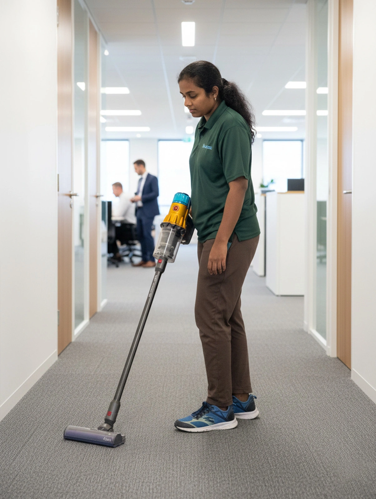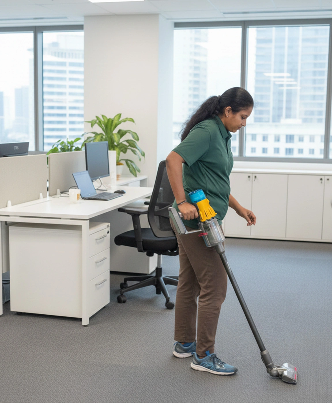 Cleaning before/after office hours, weekends, or shifts without disrupting work.