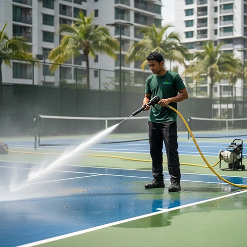 We use advanced cleaning equipment to remove dirt, moss, and debris that build up over time. This process restores a slip-free and visually clean surface, making the court safer for every player. By keeping the court well-maintained, we ensure smooth gameplay and long-lasting performance.