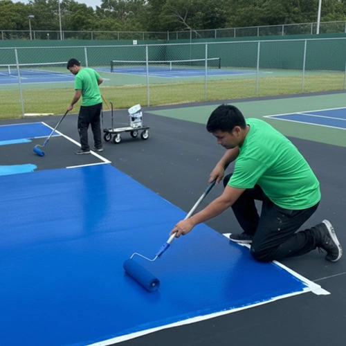 Yes, we offer complete court repainting and precise line marking services to restore clear visibility and professional play standards.