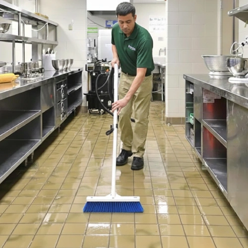 Specialized tools and degreasing methods ensure spotless kitchens and slip-free floors.